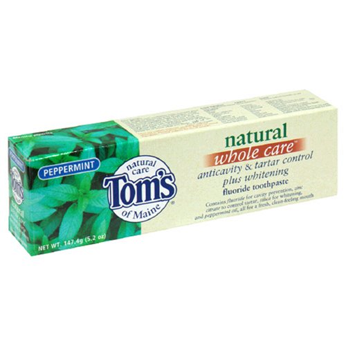 Reviews : Tom's of Maine Natural Whole Care Anticavity & Tartar Control Plus Whitening Fluoride Toothpaste, Peppermint, 5.2-Ounce Tubes (Pack of 6) |
